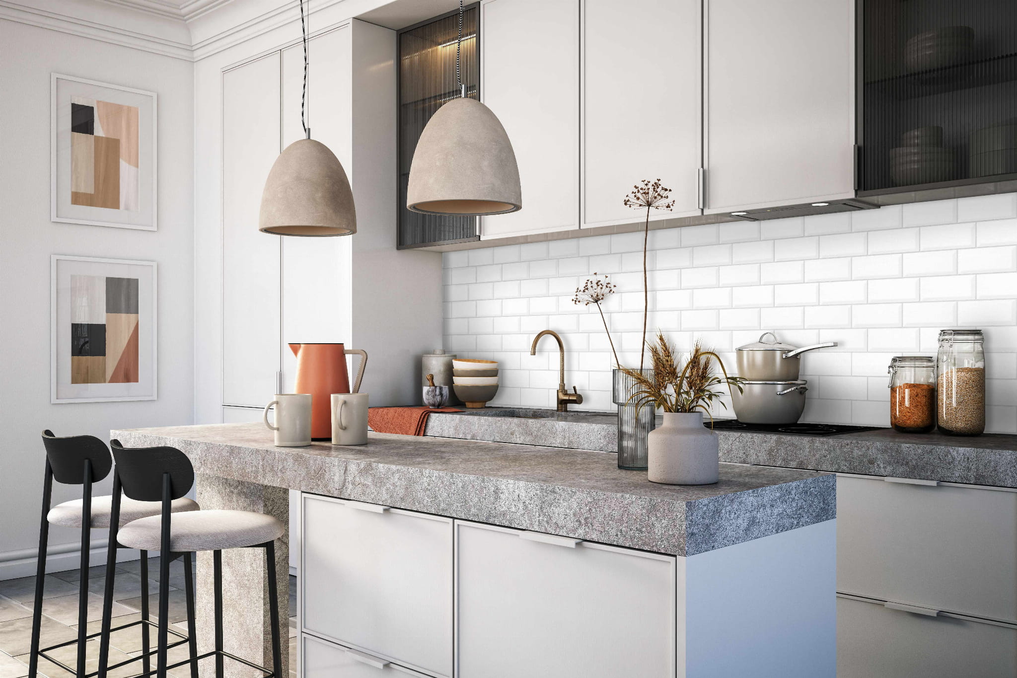BIAŁA KAFLA Z SZARĄ FUGĄ